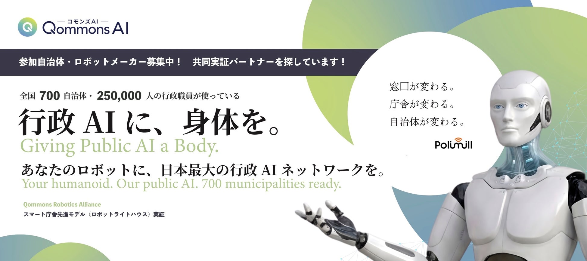 Polimill株式会社が開発・提供・運用する行政向け生成AI「QommonsAI」は、国内外の法律・政策・論文・自治体事例など数千万件以上のデータを基に、エビデンスベースで自治体課題の解決を支援します。
