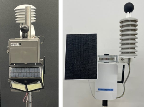 環境科学国際センターでは、令和3年度に、野外で長期間測定ができ、低価格で既製品と同程度の測定精度を持つ、IoT暑さ指数計を開発しました(図2左)。