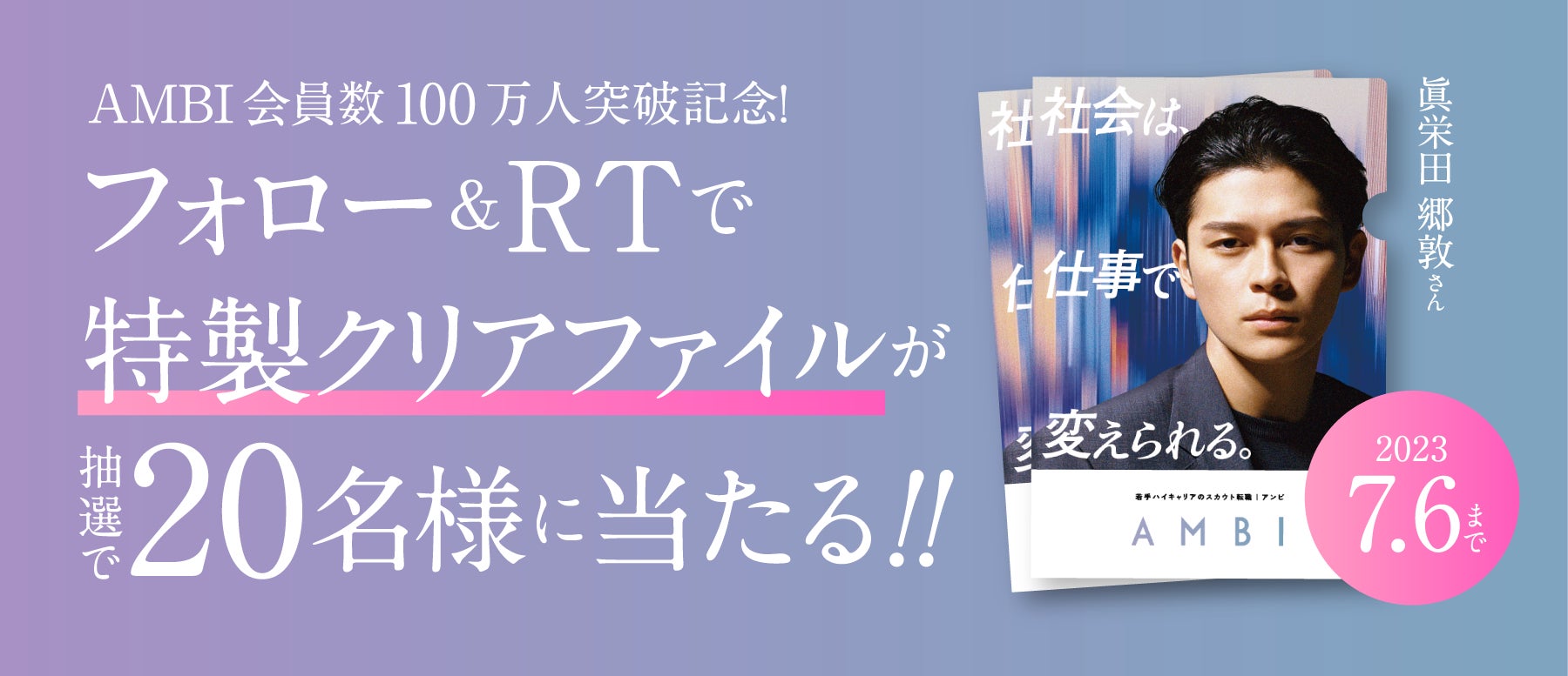 会員数100万人突破記念!若手ハイキャリア向けスカウト転職『AMBI』夏の大型プロモーション 2023年7月1日(土)開始