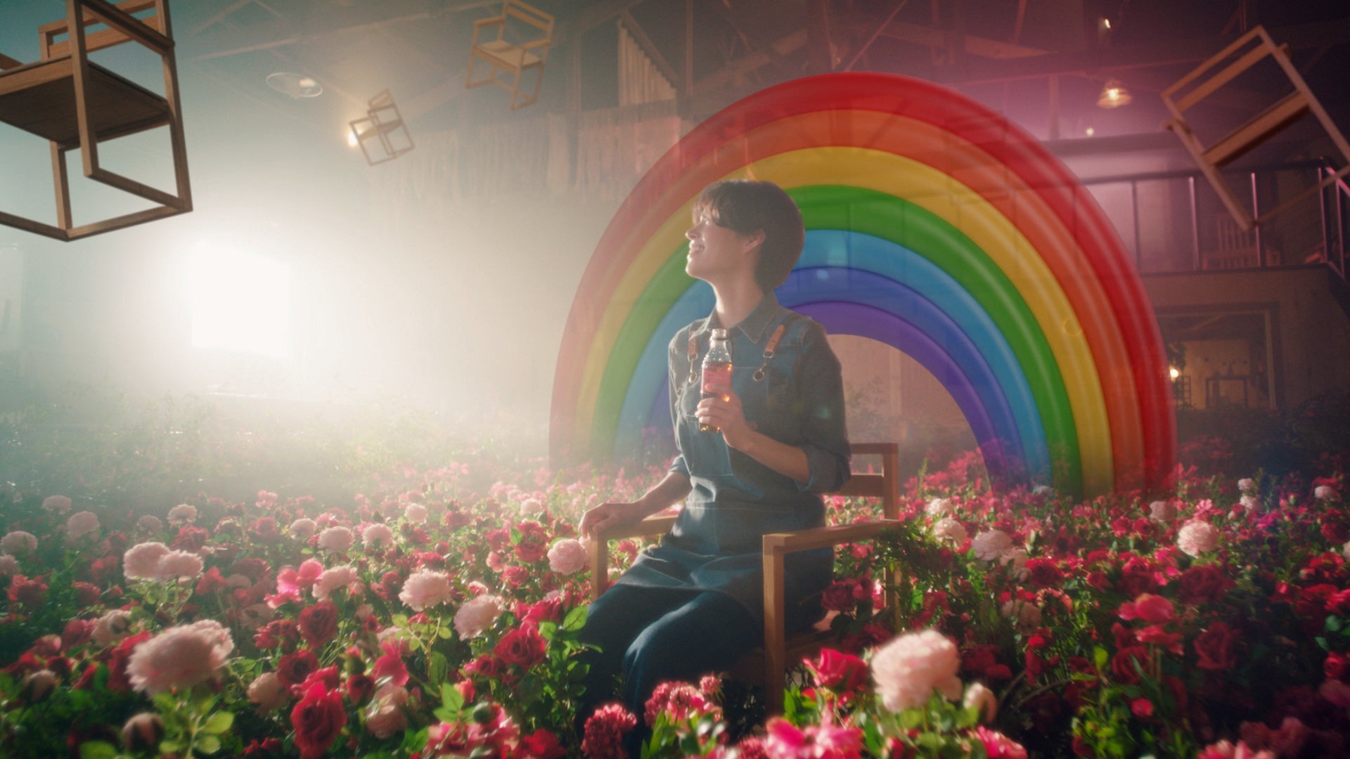 椅子を製造している女性が「コカ・コーラ ゼロ」を一口飲むと、目がハートになり、花束に囲まれ、椅子が宙に舞う世界へと周囲が一変する。女性の後ろには虹も描き足される。