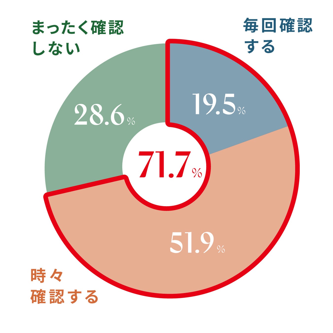 ‐ 原材料表示について 「毎回確認する」「時々確認する」を合わせ、確認すると答えた人は 71.7%