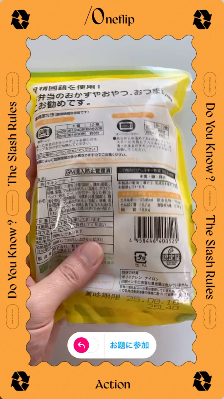 食品パッケージを裏返して食品添加物をチェック!2秒でできる「/Oneflipアクション」を開始