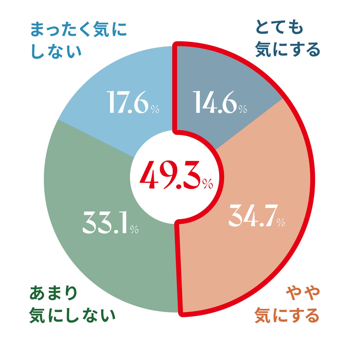 ‐ 「やや気にする」「とても気にする」を合わせ、気にすると答えた人は 49.3%