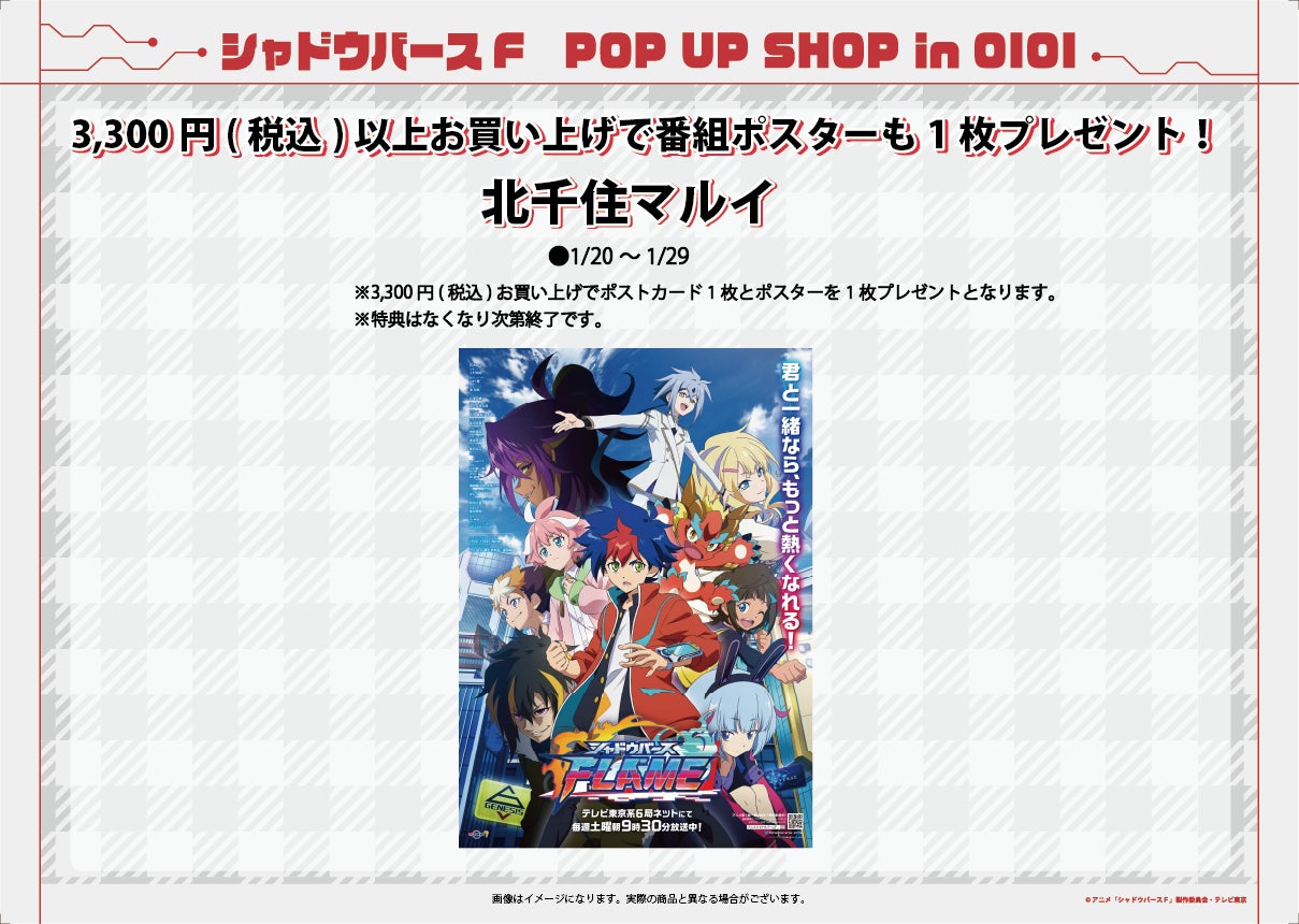 北千住マルイ会場の購入者特典を公開した他、税込み3,300円以上お買い上げの方には番組ポスターのプレゼントも決定!