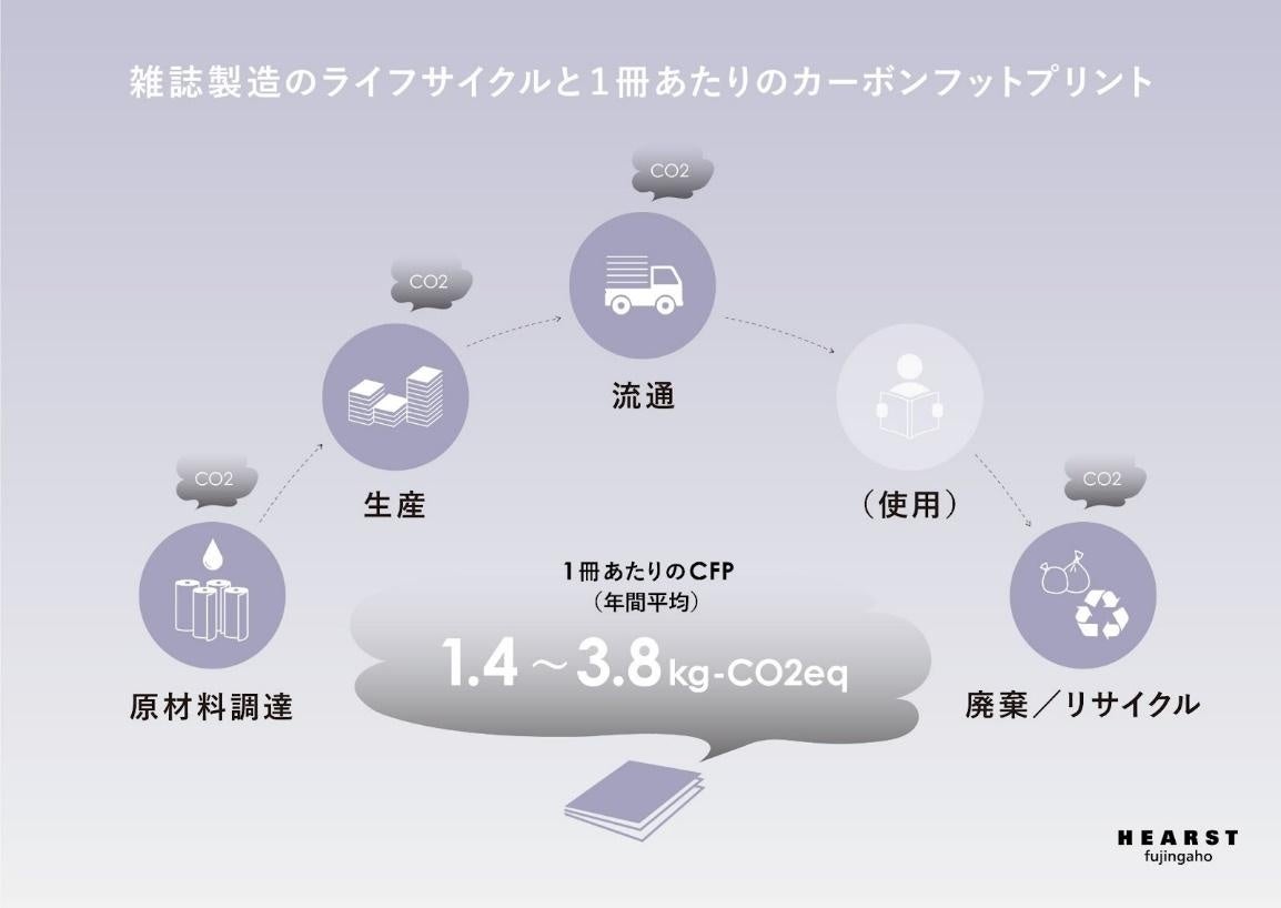 全14誌のカーボンフットプリントを算定し、読者啓発のため雑誌に開示