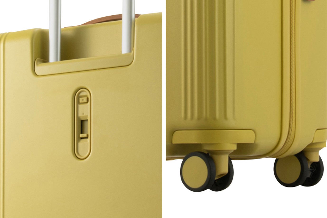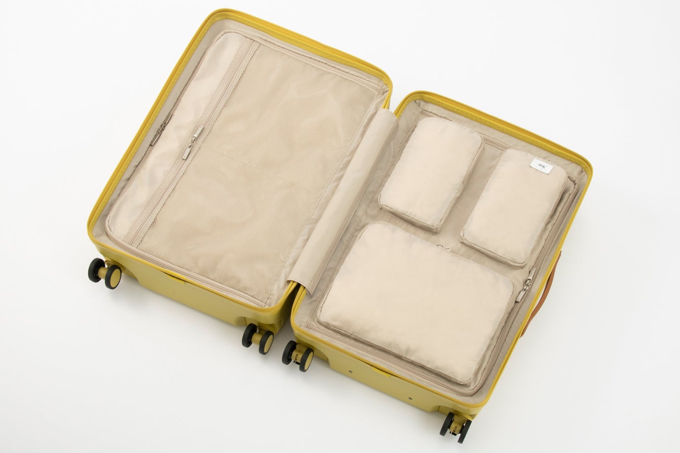 また、空港のターンテーブルでも見つけやすい、鮮やかな新色イエローを追加します。内装や付属のセットアップトートには、明るいベージュカラーを採用しました。