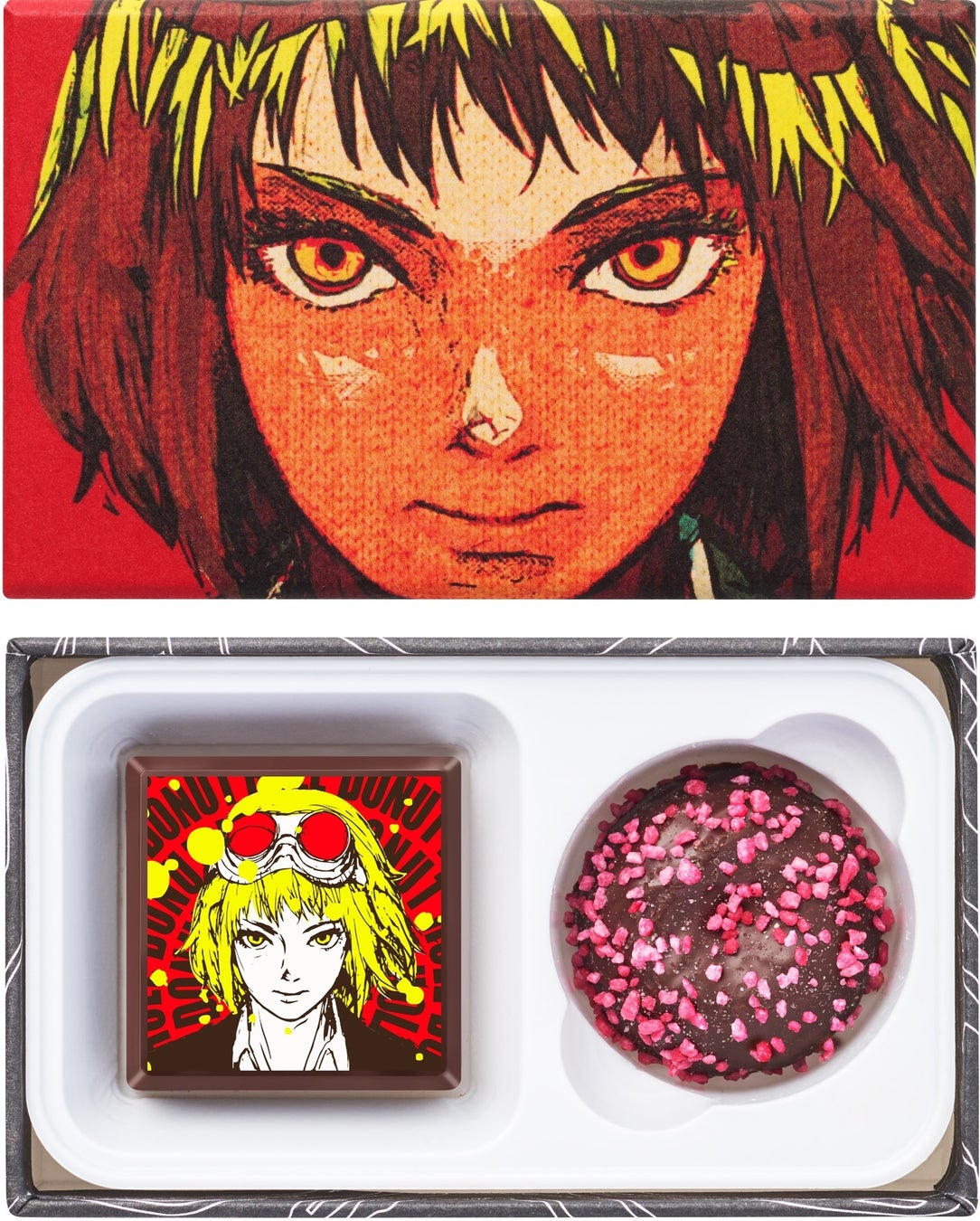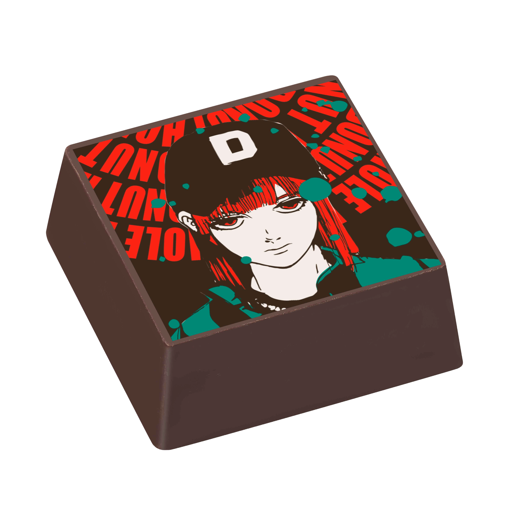 ハチにより2013年にリリースされた「ドーナツホール」という楽曲。今回そのイラストをハチが自ら新たに描きおろし、GUMI、初音ミク、巡音ルカ、鏡音リンの新たなグラフィックが誕生しました。その原画をプリントしたチョコレートと「ドーナツ ショコラ」を、オリジナルデザインのボックスに詰め合わせてお届けします。