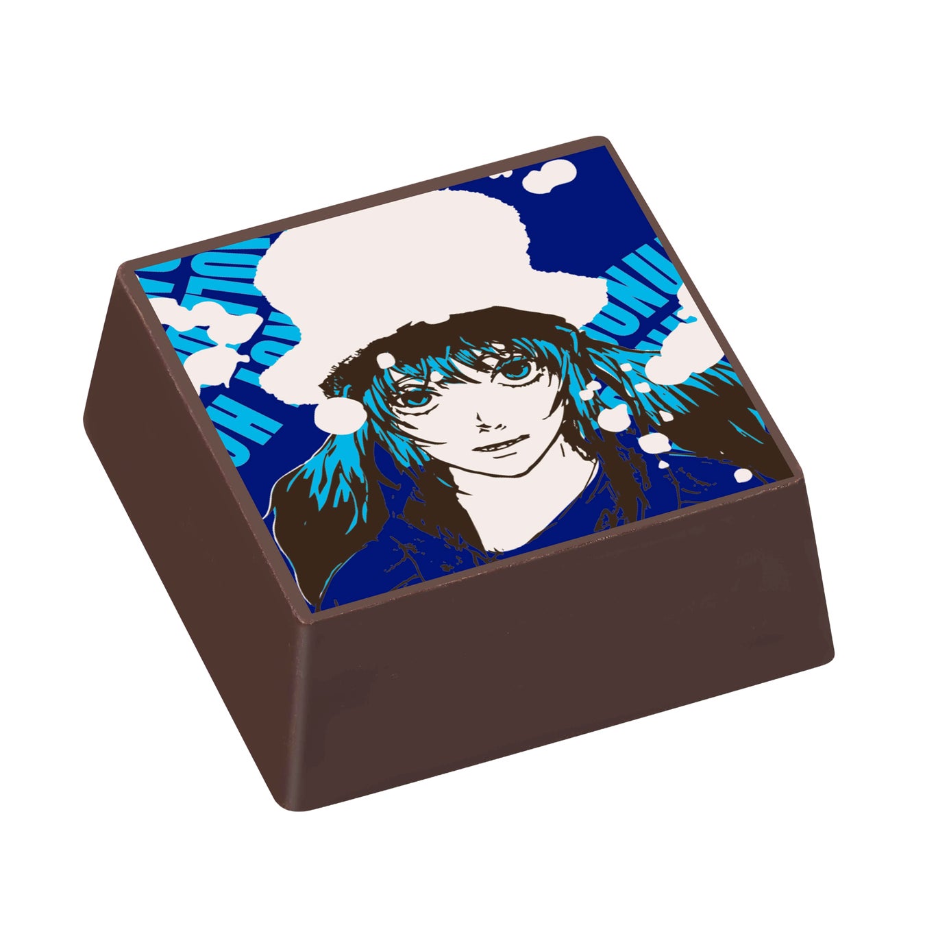 キャラメルガナッシュをダークチョコレートで包みました。ハチが描いた巡音ルカのオリジナルデザインです。