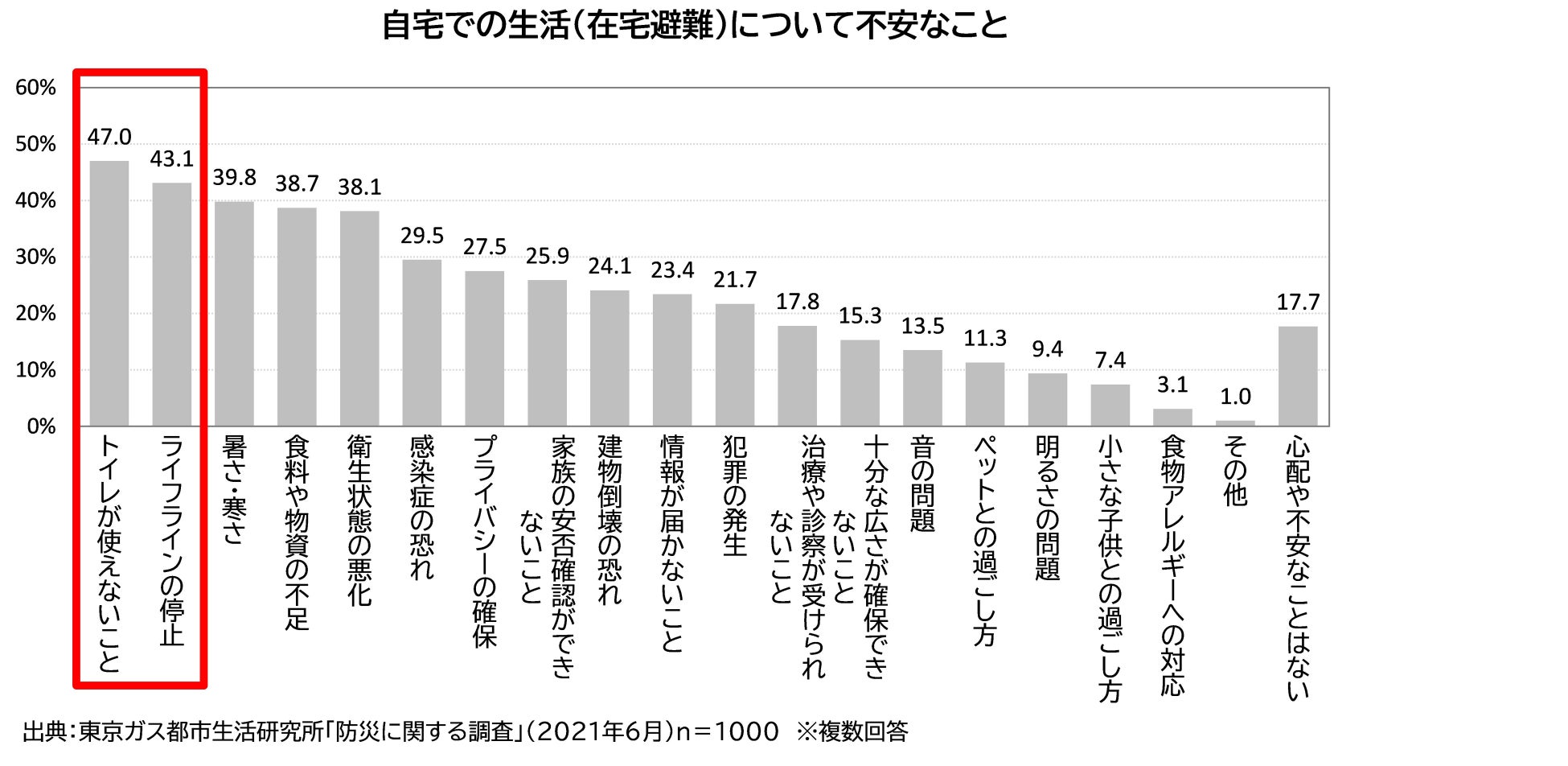 - 在宅避難時の不安1位は「トイレ」、2位は「ライフラインの停止」!