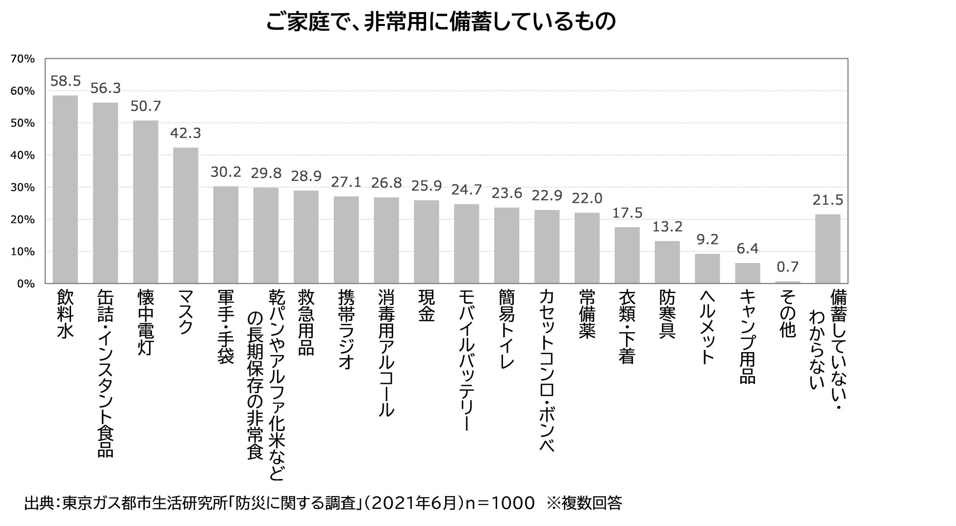 東京ガス都市生活研究所は2月2日、2021年に実施した「災害の備えに関する調査」と「防災食に関する調理実験の結果」を、東京ガスくらし情報サイト「ウチコト」で公表しました。