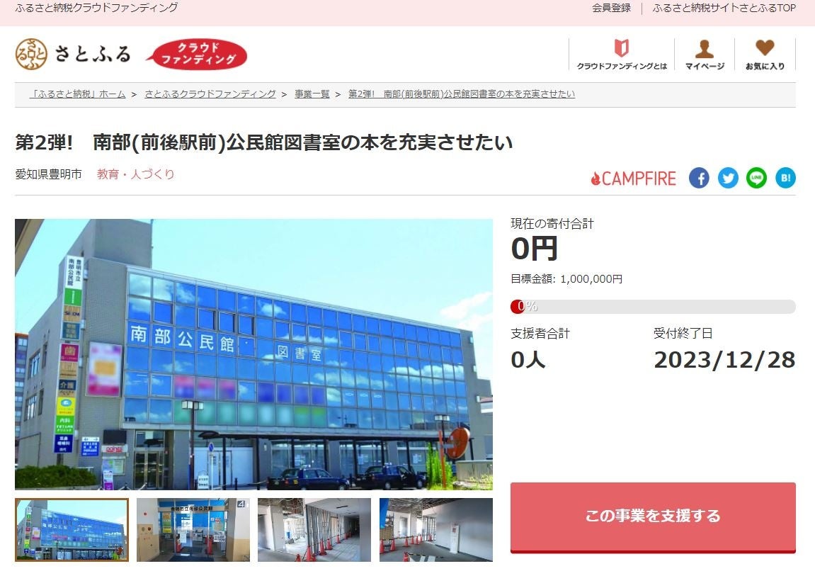 この度は「第2弾!南部(前後駅前)公民館図書室の本を充実させたい」にご興味をもっていただき、ありがとうございます。