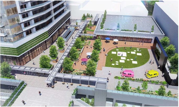 また本物件の敷地内には、24時間開放の公共広場と、相模大野中央公園までつながる公共歩廊が新設され、広場の周辺には、スーパーマーケットや保育園をはじめとした、約10テナント※1の商業施設・地域貢献施設が入居予定です。それらを活用し、主に以下のような取り組みを行うことで、回遊性向上や賑わい創出に取り組んでまいります。