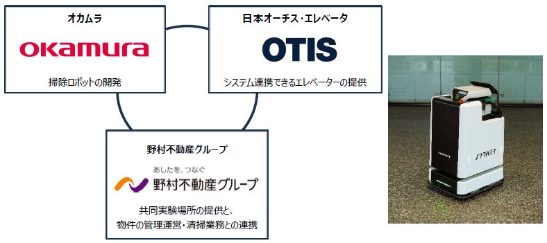 エレベーターと連携し、上下階移動可能な掃除ロボットの導入に向け、野村不動産グループ各社(野村不動産・野村不動産パートナーズ・野村不動産アメニティサービス)が、株式会社オカムラ、日本オーチス・エレベータ株式会社と共同で、Otis Integrated Dispatch™ (オーチス・インテグレーテッド・ディスパッチ)システムを活用し、「プラウドタワー相模大野クロス」の共用部において実証実験を進めております。