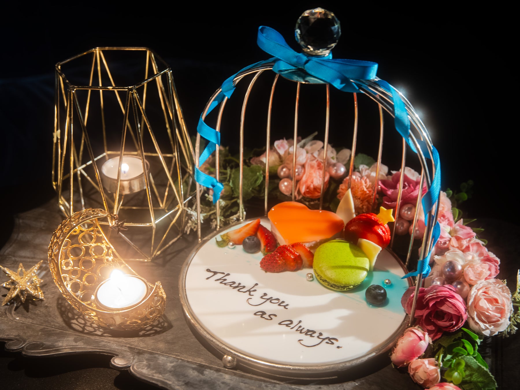 ※プラス1000円で鳥籠ケーキとバードグラスの乾杯カクテル付き記念日プランに変更可能