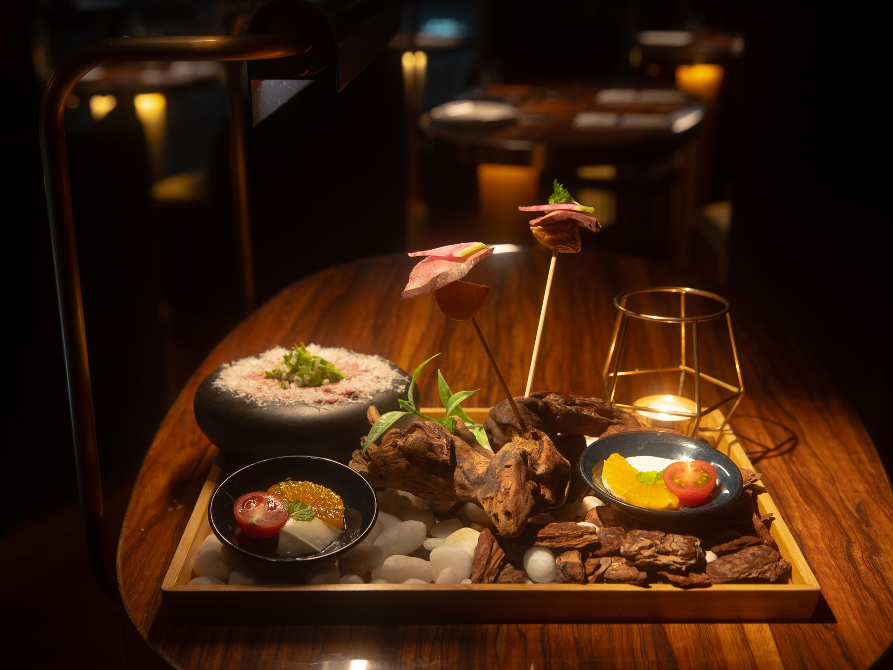 ・宮崎牛 低温調理した黒毛和牛ハツのタタキとヤングコーン ピンチョス仕立て