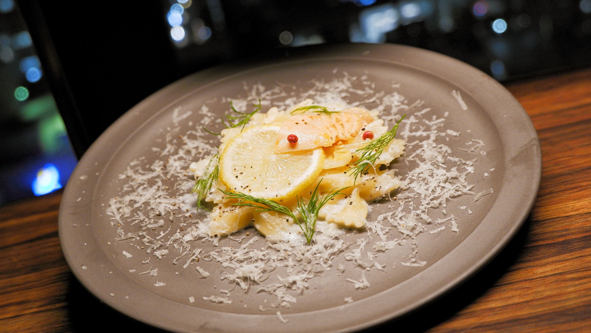 【Antipasto Caldo】サーモンとフレッシュハーブの搾りたてレモンクリームファルファッレ