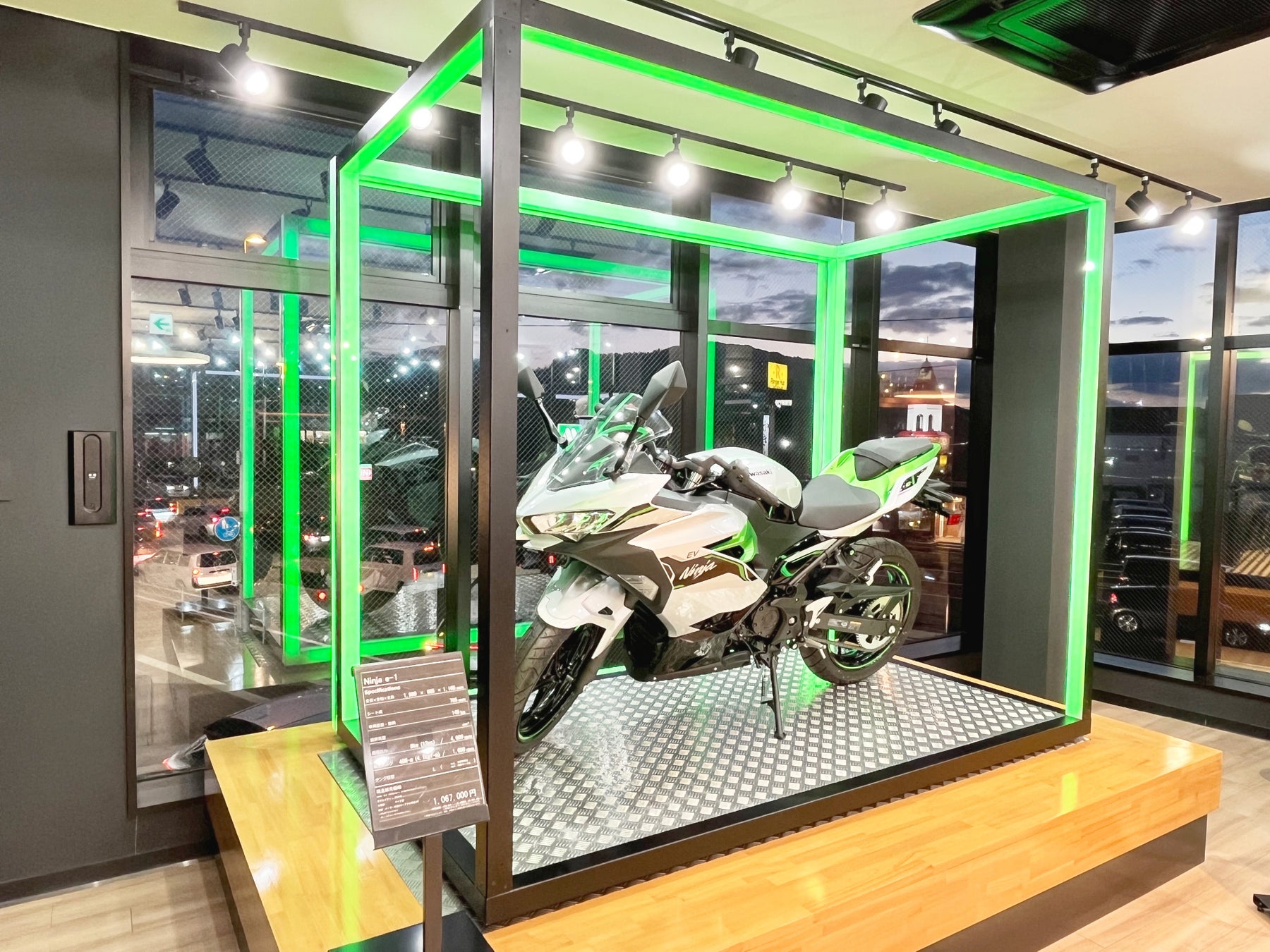 大分市宮崎の「カワサキ プラザ大分」が店内をリニューアル!ウッディなフロアが優しいぬくもりを伝えます。経験豊かなスタッフが皆様のモーターサイクルライフをサポートいたします。