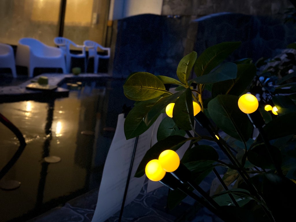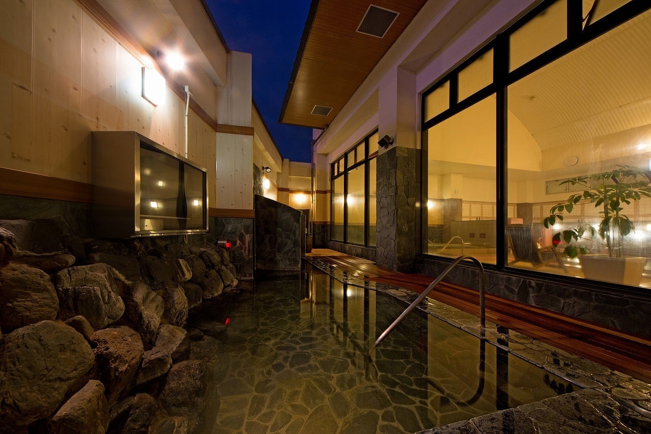 おふろcafe utataneの露天風呂にて「節電ホタル風呂」。節電要請に応える形で期間を延長して実施します