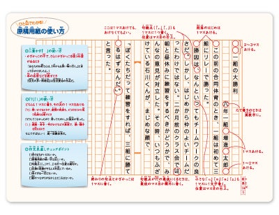 学習中にいつでも確認できるので、原稿用紙の使い方が自然と身につきます。