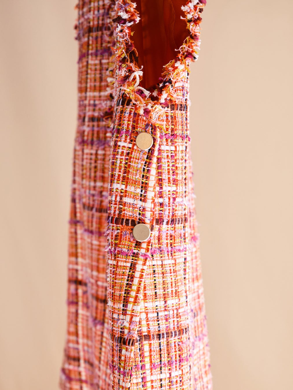 縦横に走る鮮やかなオレンジが印象的な生地に、