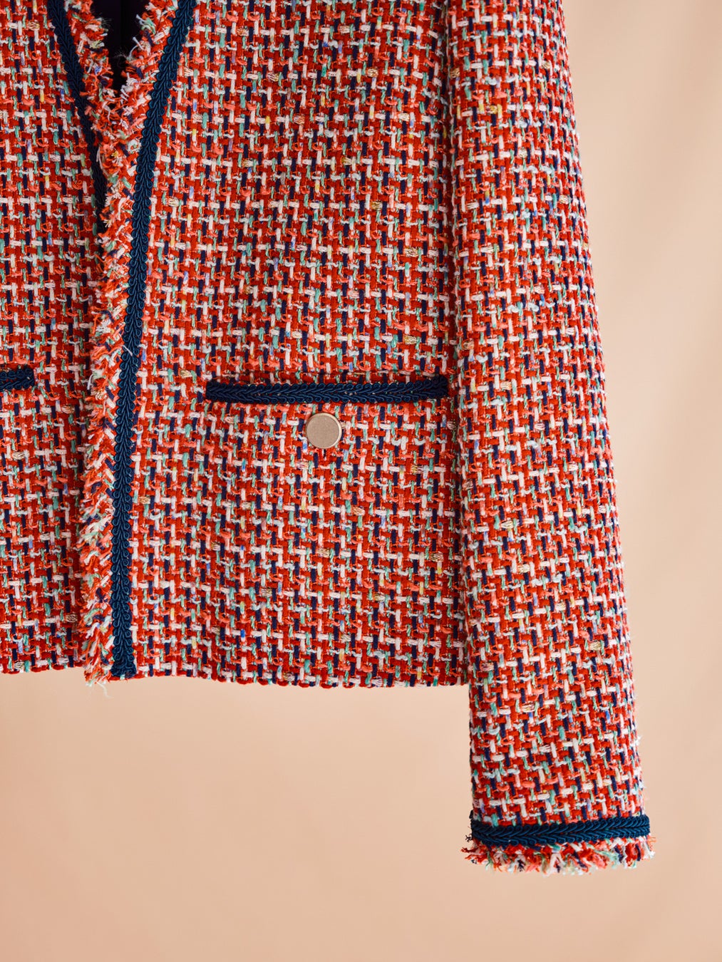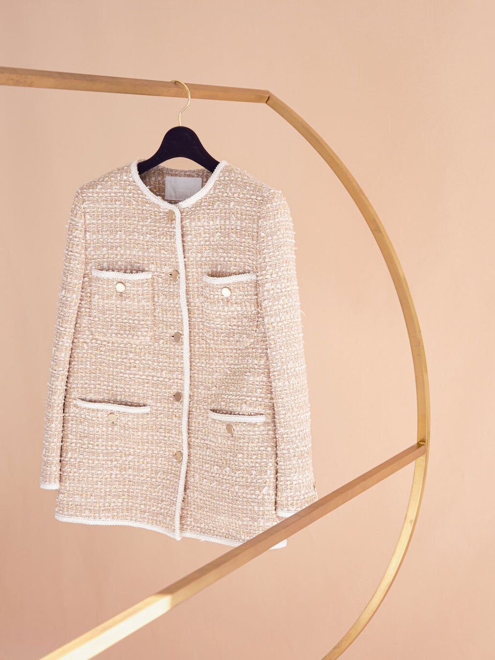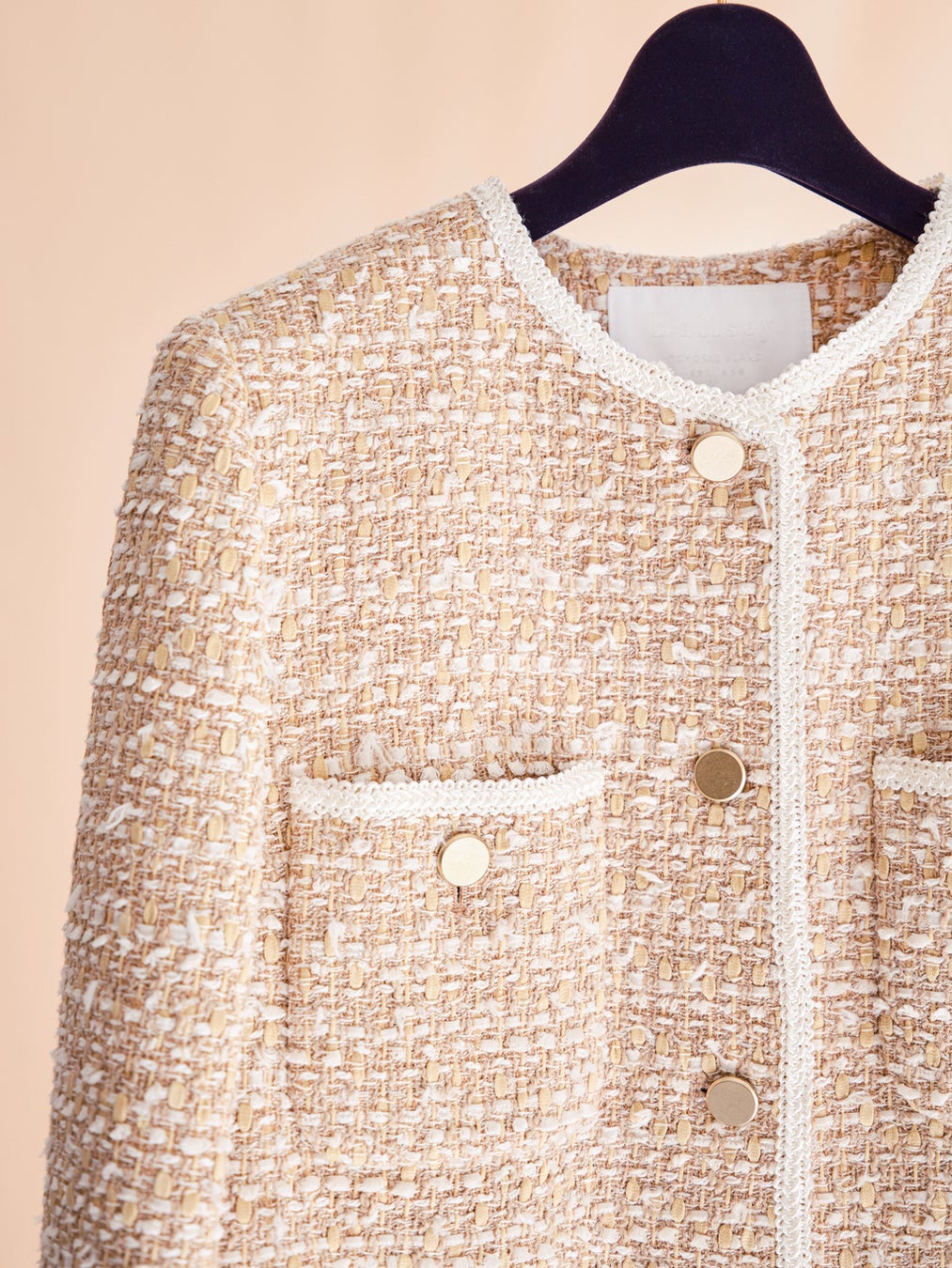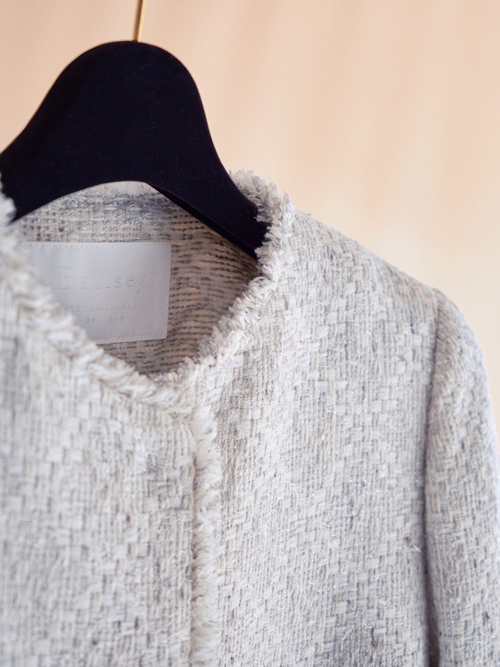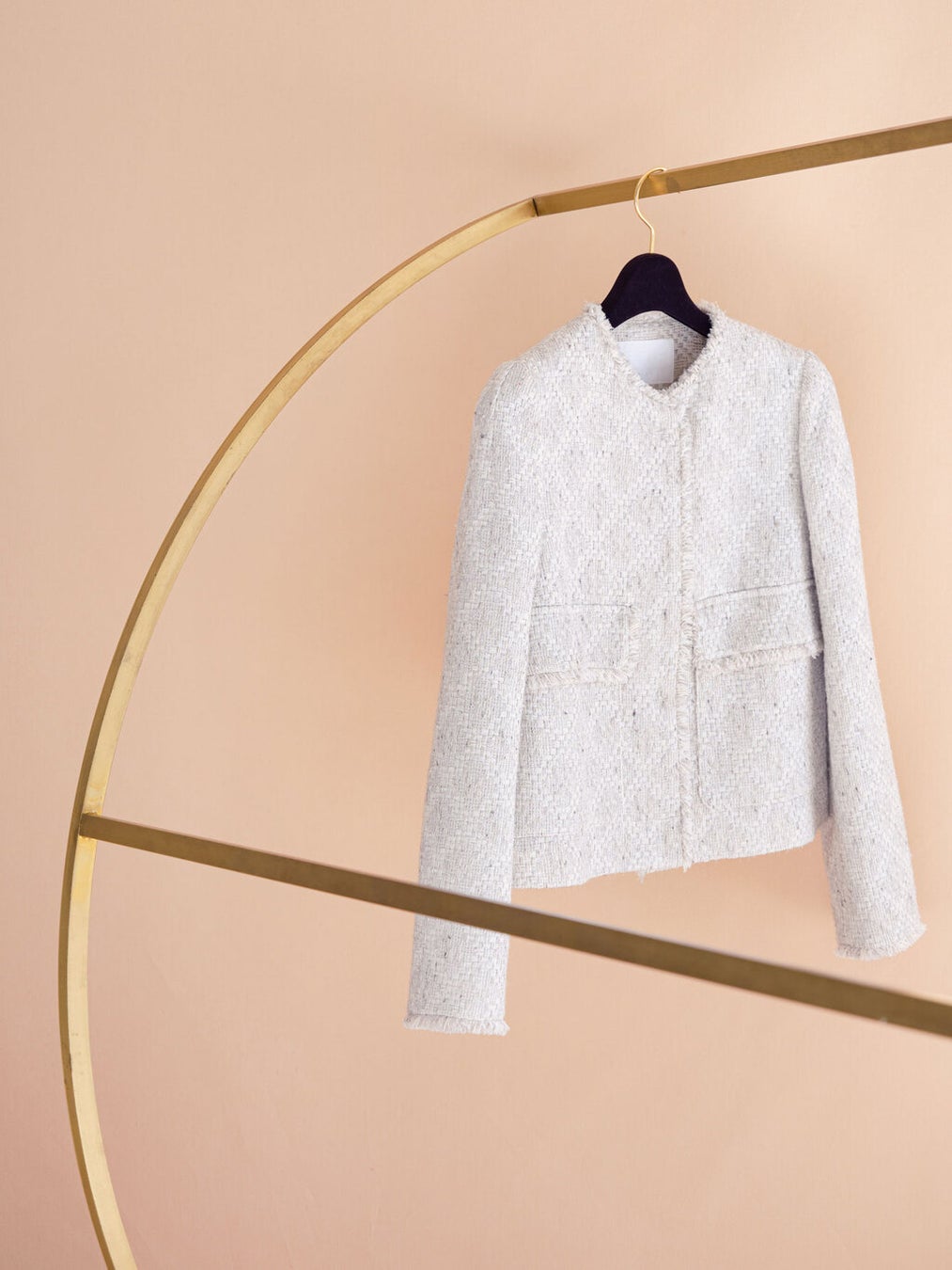 〈Ballsey〉らしいシンプルなノーカラージャケットに落とし込みました。