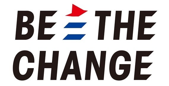 「BE THE CHANGE」のロゴは、世界を変える「風」をモチーフに