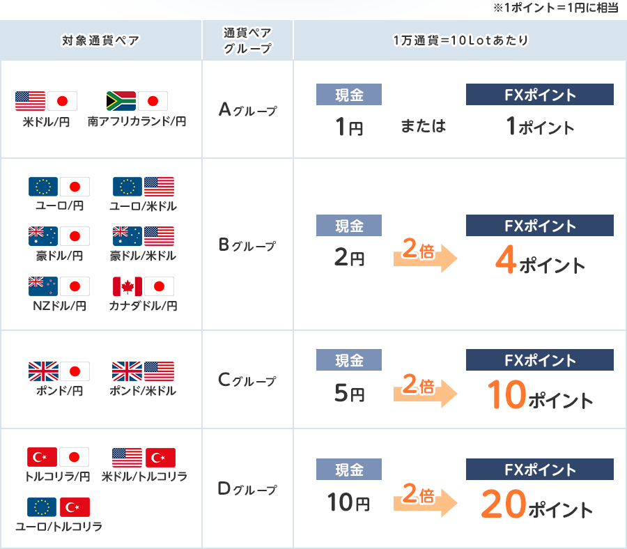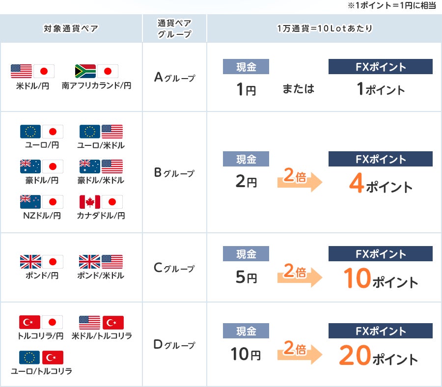 トルコリラ関連通貨ペアのキャッシュバック額にご注目いただきつつ、この機会にぜひお試しください。