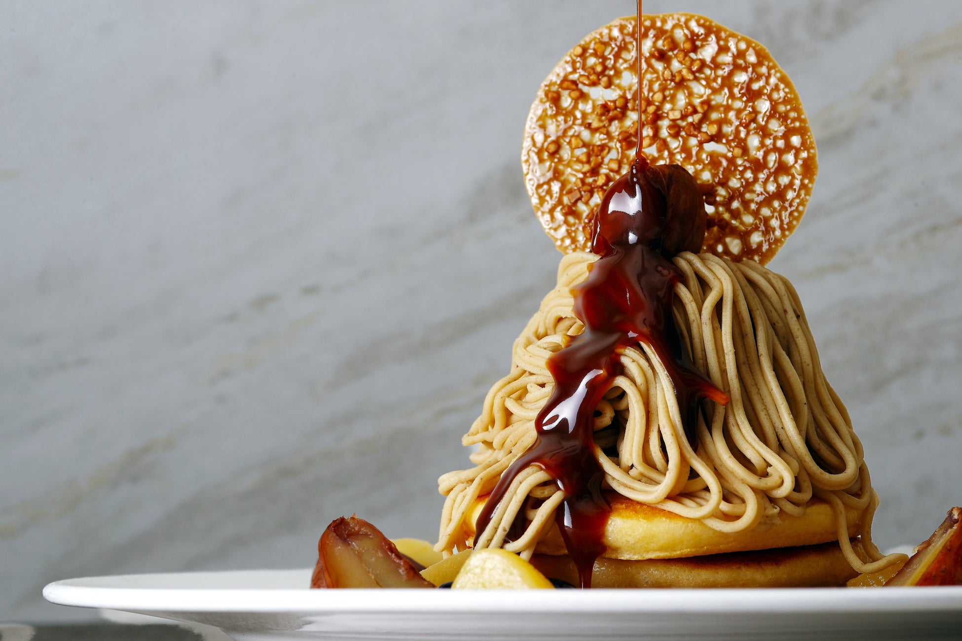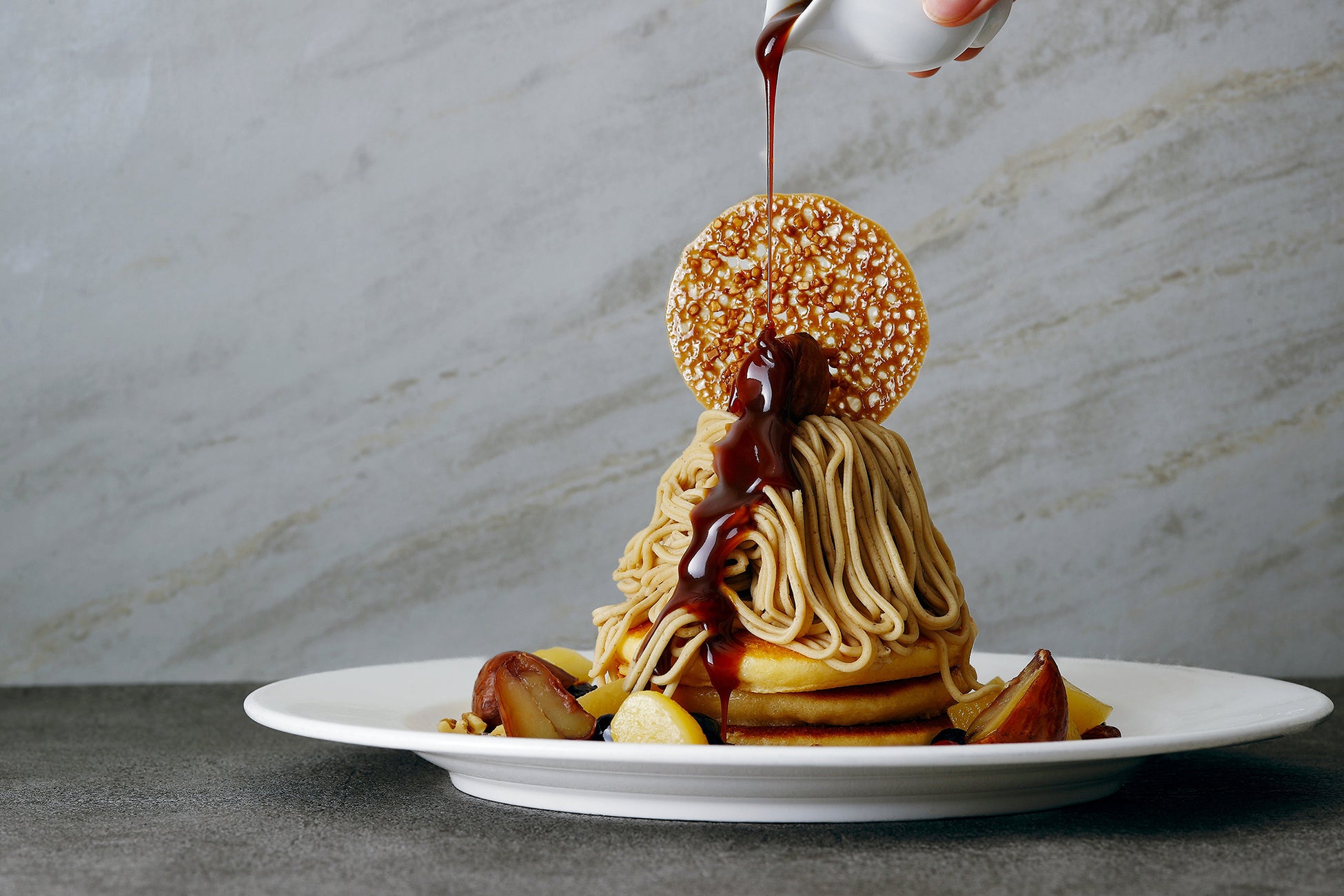 『お月見モンブランパンケーキ』は、目でも舌でも秋をお楽しみいただけるフォトジェニックな贅沢スイーツ。