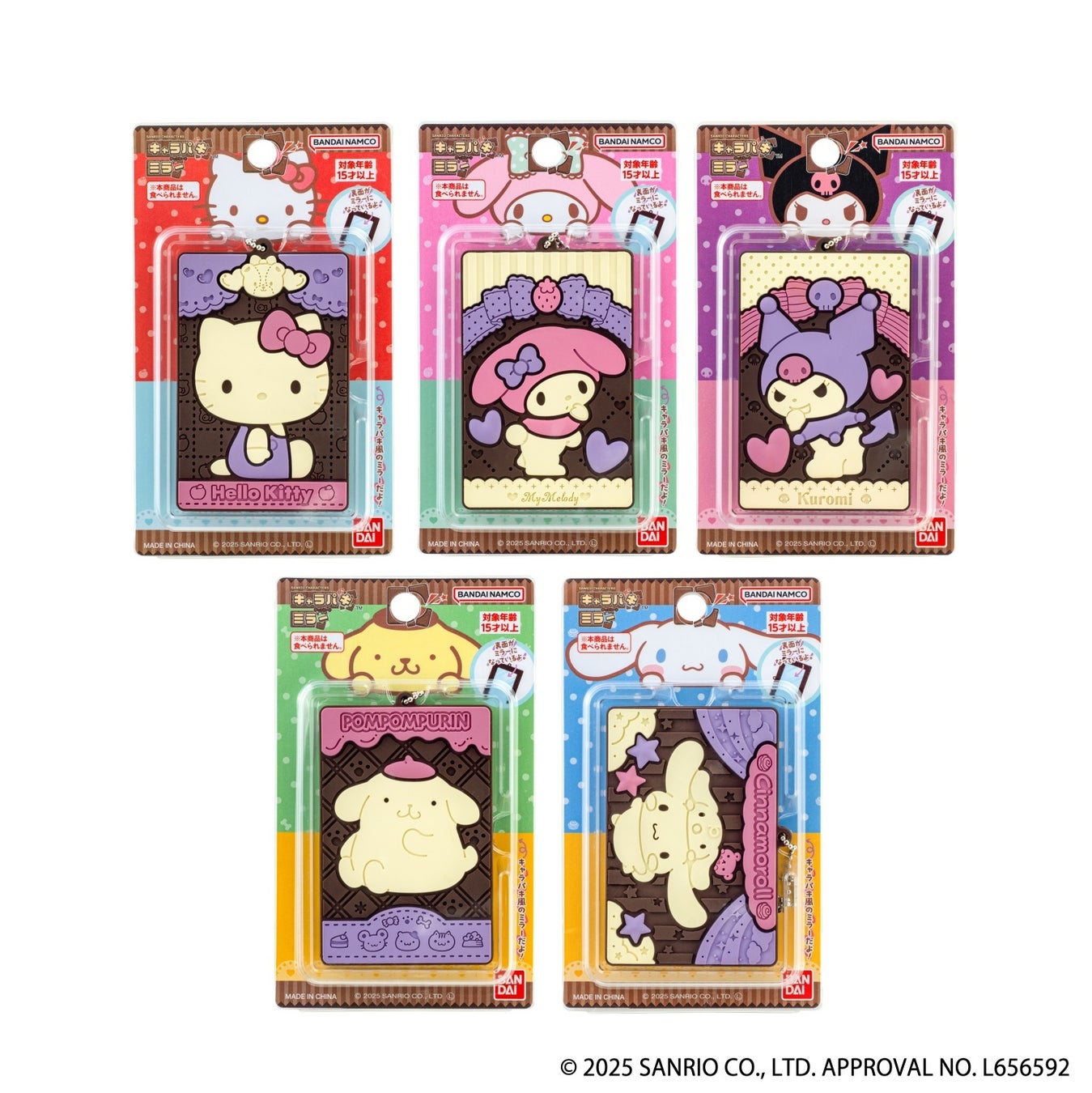 株式会社バンダイ ライフスタイル事業部では、バンダイが運営する化粧品ブランド「CreerBeaute(クレアボーテ)」より、『サンリオキャラクターズ キャラパキチョコレート』をそっくりそのままミラーにした『サンリオキャラクターズ キャラパキチョコレートミラー』全5種・各1,320円(税込)を、2025年3月下旬より全国のコンビニエンスストアやドン・キホーテ、ドラッグストア、バラエティ・キャラクター雑貨専門店など(※一部取り扱いの無い法人・店舗もございます)で順次販売開始いたします。(発売元:株式会社バンダイ クレアボーテ)