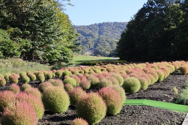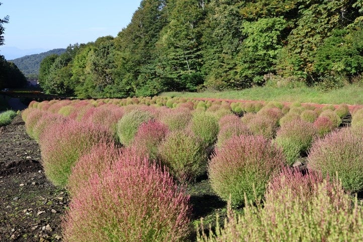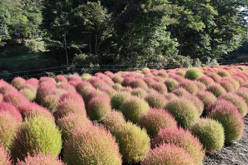 たんばらコキアガーデン(群馬県沼田市、総支配人:三田村 和孝)では、赤コキア約 1 万本が見ごろを迎えたことをお知らせいたします。