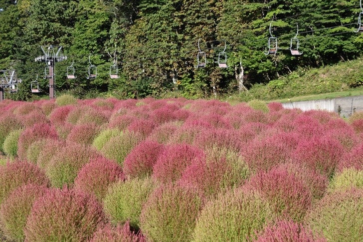 たんばらコキアガーデン 紅葉進むコキア 1 万株が見ごろ