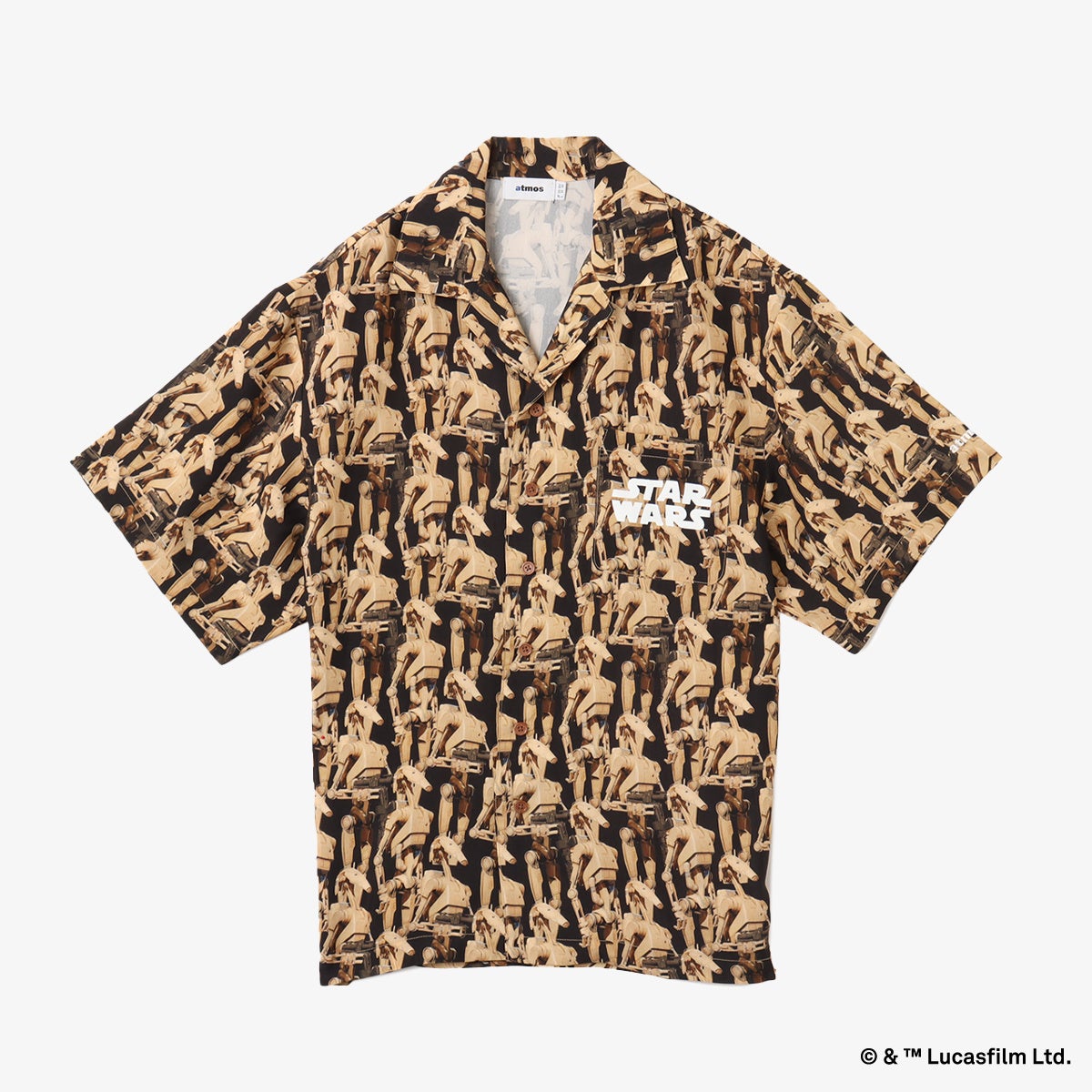 展開されるラインナップは、主要キャストである「アナキン・スカイウォーカー」、「パドメ・アミダラ」、「ダースモール」、「バトル・ドロイド」、「C-3PO」、「R2-D2」といった人気キャラクターから「N-1スターファイター」や「ドロイド司令船」など「スター・ウォーズ」の世界観を存分に表すモチーフを「アトモス」らしいアイデアでアレンジしたTシャツやオープンカラーシャツを用意。Tシャツは、各キャラクターをプリントでデザインし、左のショルダーには「アトモス」のロゴを刺繍。ブラック展開は統一で、キャラクターを想起させるカラーも交えてそれぞれ2色でレパートリーしました。また、オープンカラーシャツは、様々なキャラクターを総柄で加えたインパクトあるルックスで作りこんだこだわりのウェアとなります。