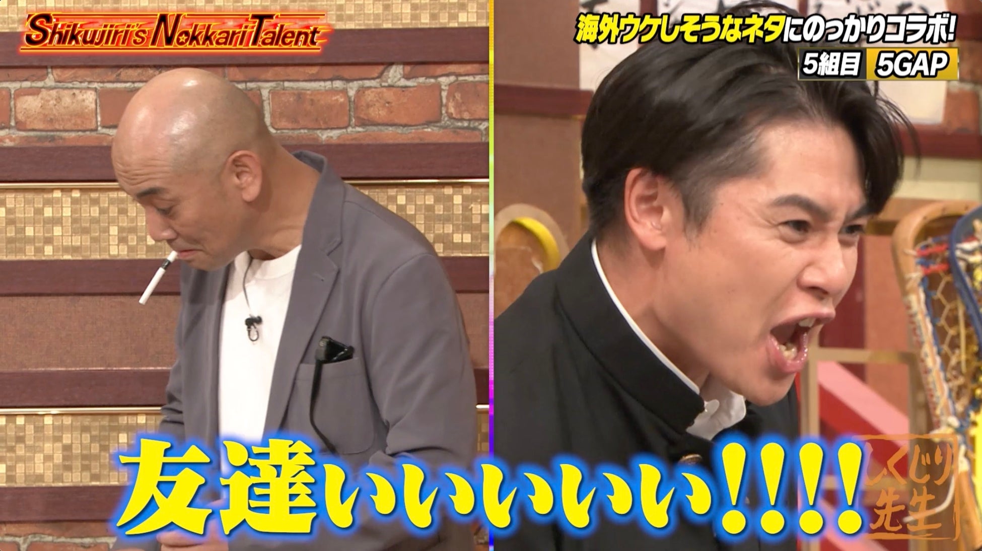 11月8日(金)の配信回では、お笑い研究部の最新作「Shikujiri’s Nokkari Talent」をお送りしました。海外でも活躍する芸人が増えている中、お笑い研究部メンバーも『アメリカズ・ゴット・タレント』に出演して海外進出を目指そうと、海外でもウケそうな芸人のネタにのっからせてもらうコラボネタ企画です。