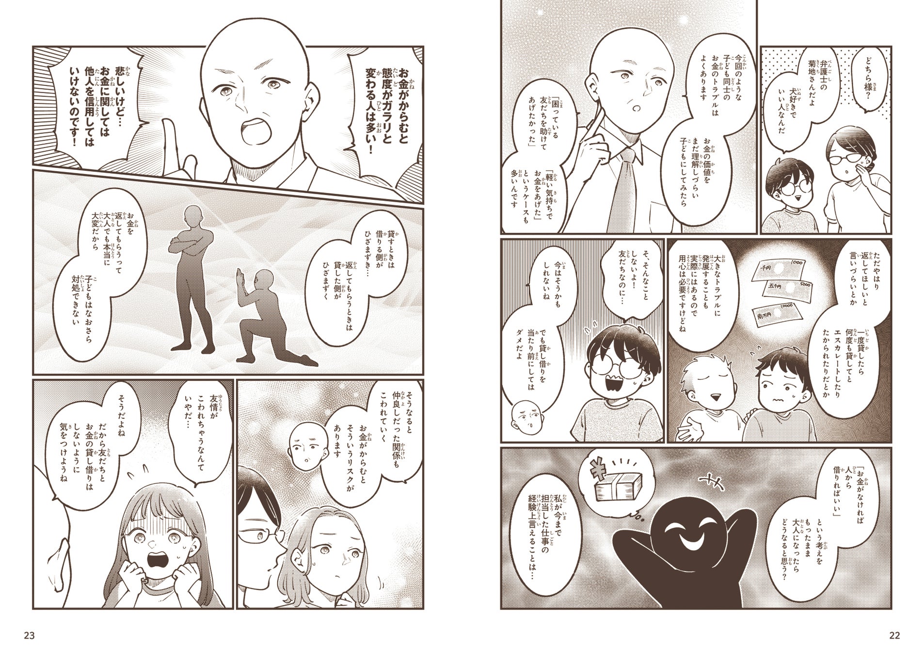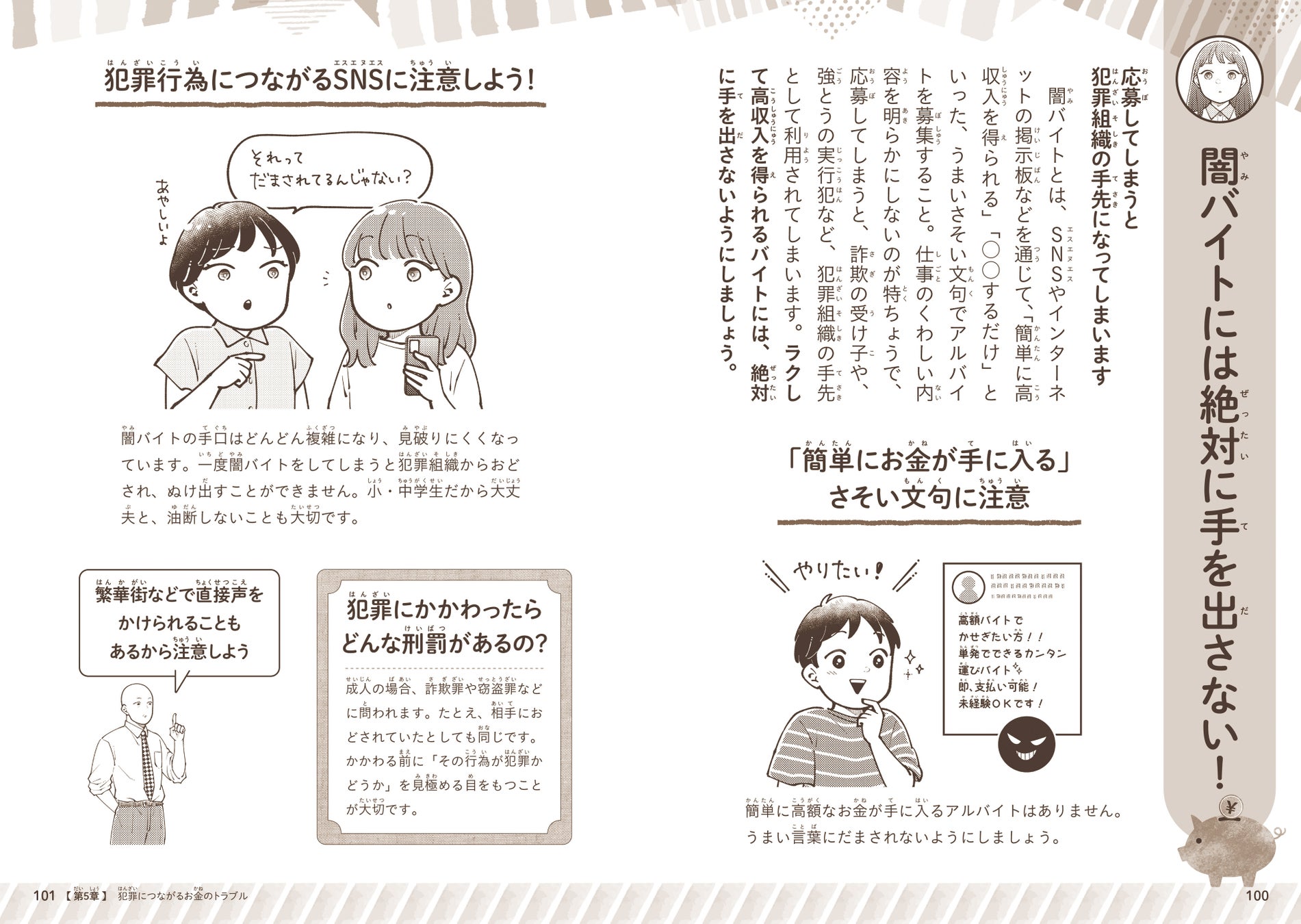 本書では、“お金は生活必需品の一つである”という前提と共に、トラブルに遭わないための心構え、家庭でのルールの決め方、お金との付き合い方、万が一トラブルに遭ってしまった時の対処法などをマンガを交えてわかりやすく解説しています。