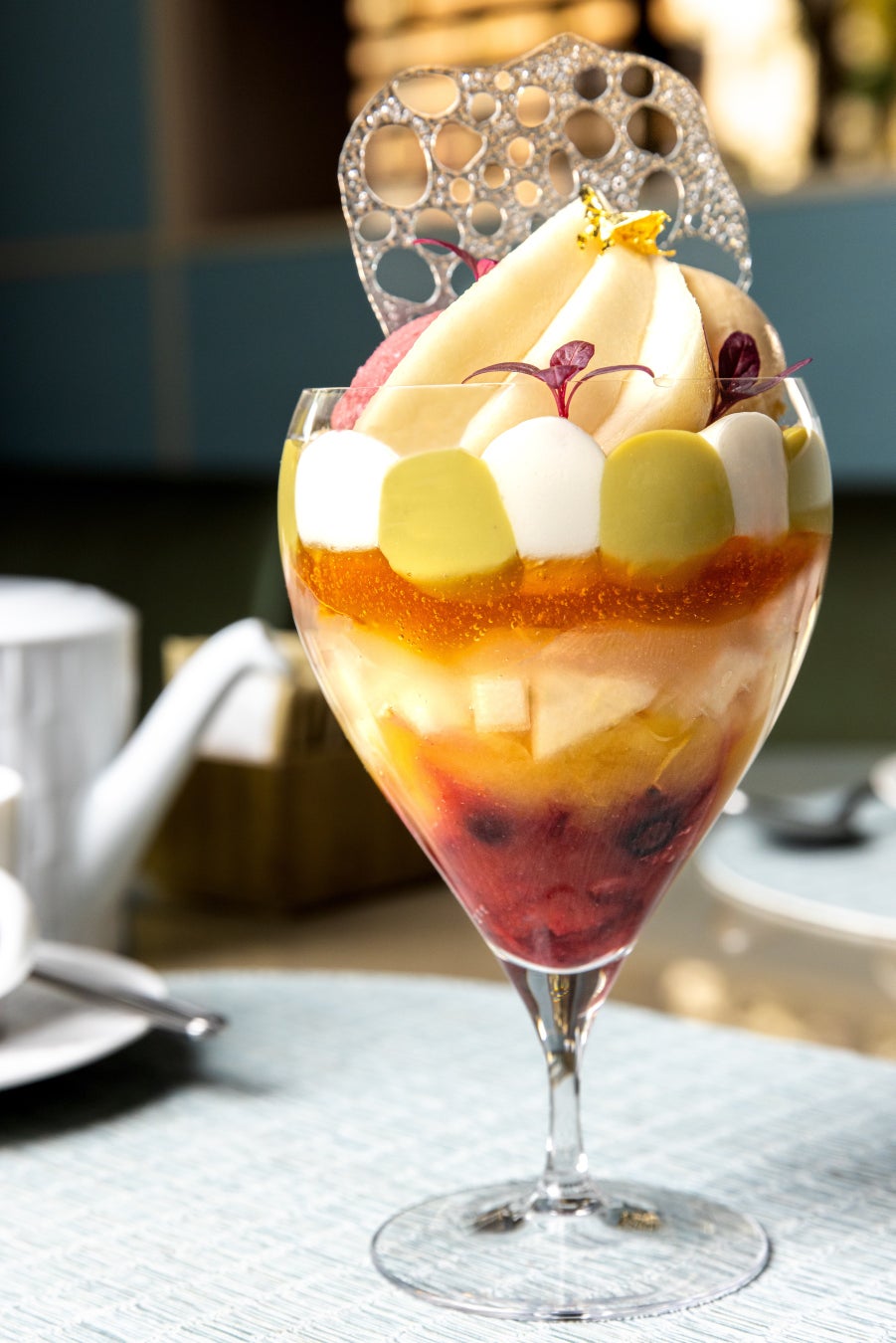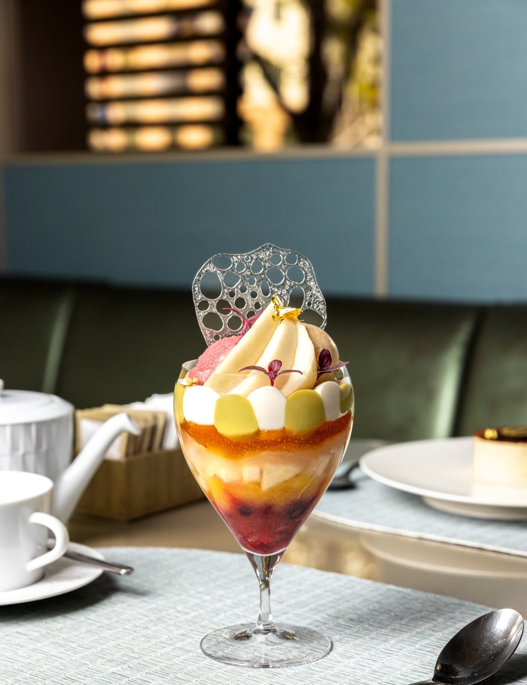 【アルマーニ / カフェ 表参道】冬の果実とスパイスが奏でる、華やかなハーモニー 12月限定「洋梨 ミックスベリー アーモンドのパフェ」
