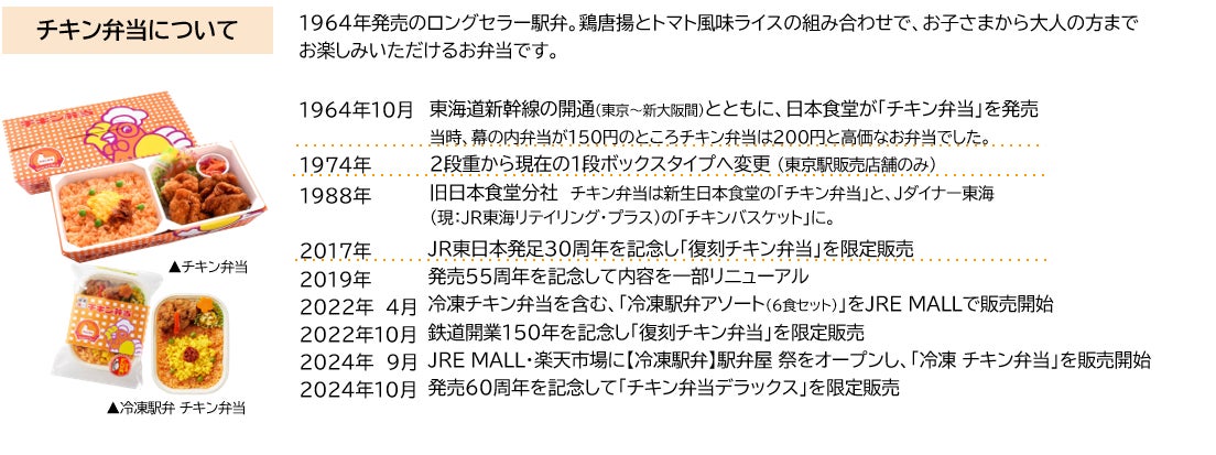 株式会社JR東日本クロスステーション フーズカンパニー(所在地:東京都渋谷区/フーズカンパニー長:深谷光浩)は、2024年10月に「チキン弁当」が発売から60周年を迎えるにあたり、日頃のご愛顧に感謝を込めて、「チキン弁当発売60周年キャンペーン」を実施します。