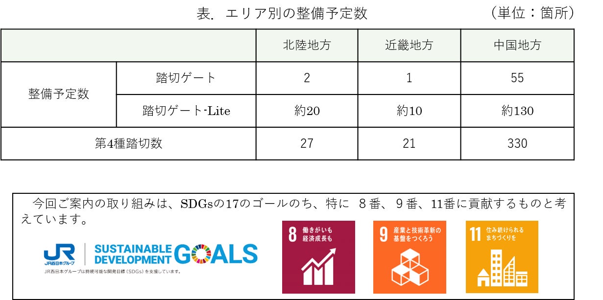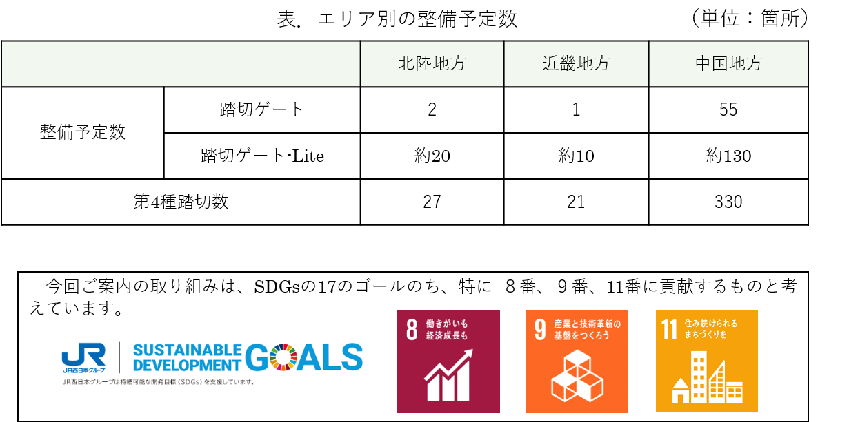 第4種踏切が多く残存する中国地方を中心に、2025年度末までに約220箇所へ『踏切ゲート』及び『踏切ゲート-Lite』を整備していく。