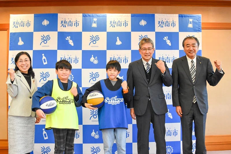 シーホース三河のサスティナビリティプロジェクト「Be With」の一環として実施している、西三河地域の小学校へバスケットボール、ビブスの寄贈を碧南市内の小学校へ行いました。