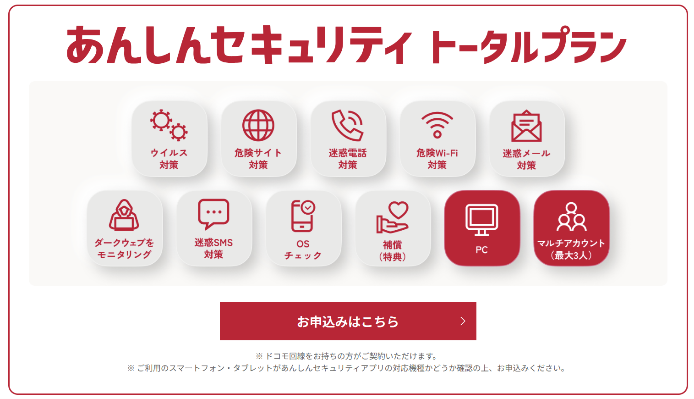 ドコモは、今後も「あんしんセキュリティ」を、あんしん・安全かつ、より便利にご利用いただけるよう、機能の拡充・利便性向上に努めてまいります。