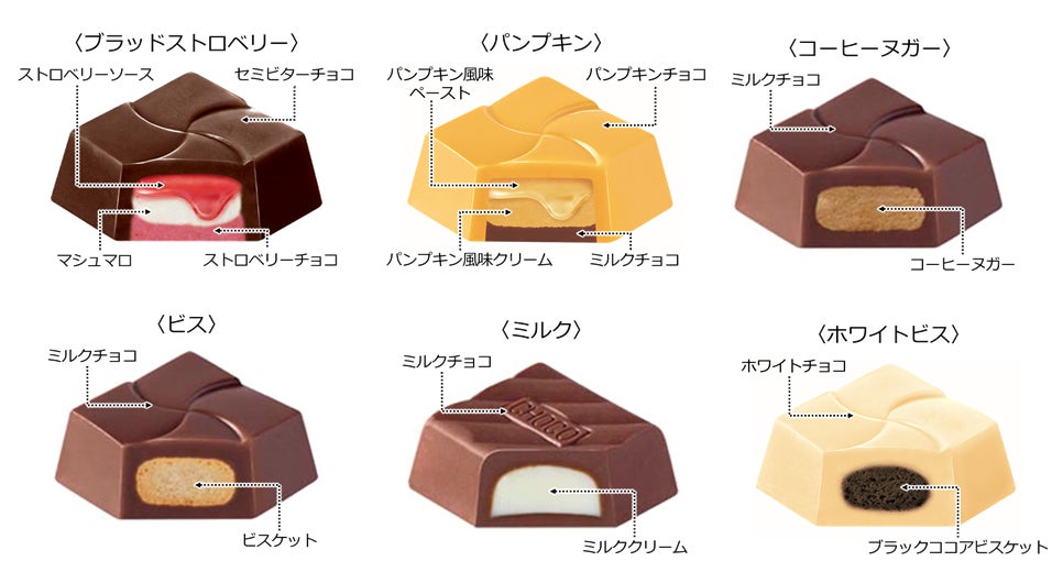 ハロウィン限定の〈ブラッドストロベリー〉〈パンプキン〉に人気の4種類のフレーバーを加えたバラエティ豊かな6種類入り。異なる食感とフレーバーで最後まで飽きずに楽しむことができるアソート商品です。