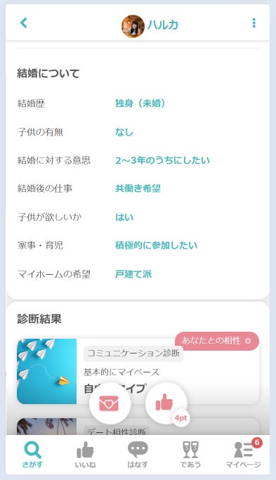 ▼プロフィールなどでお相手の理想の住まいが分かる