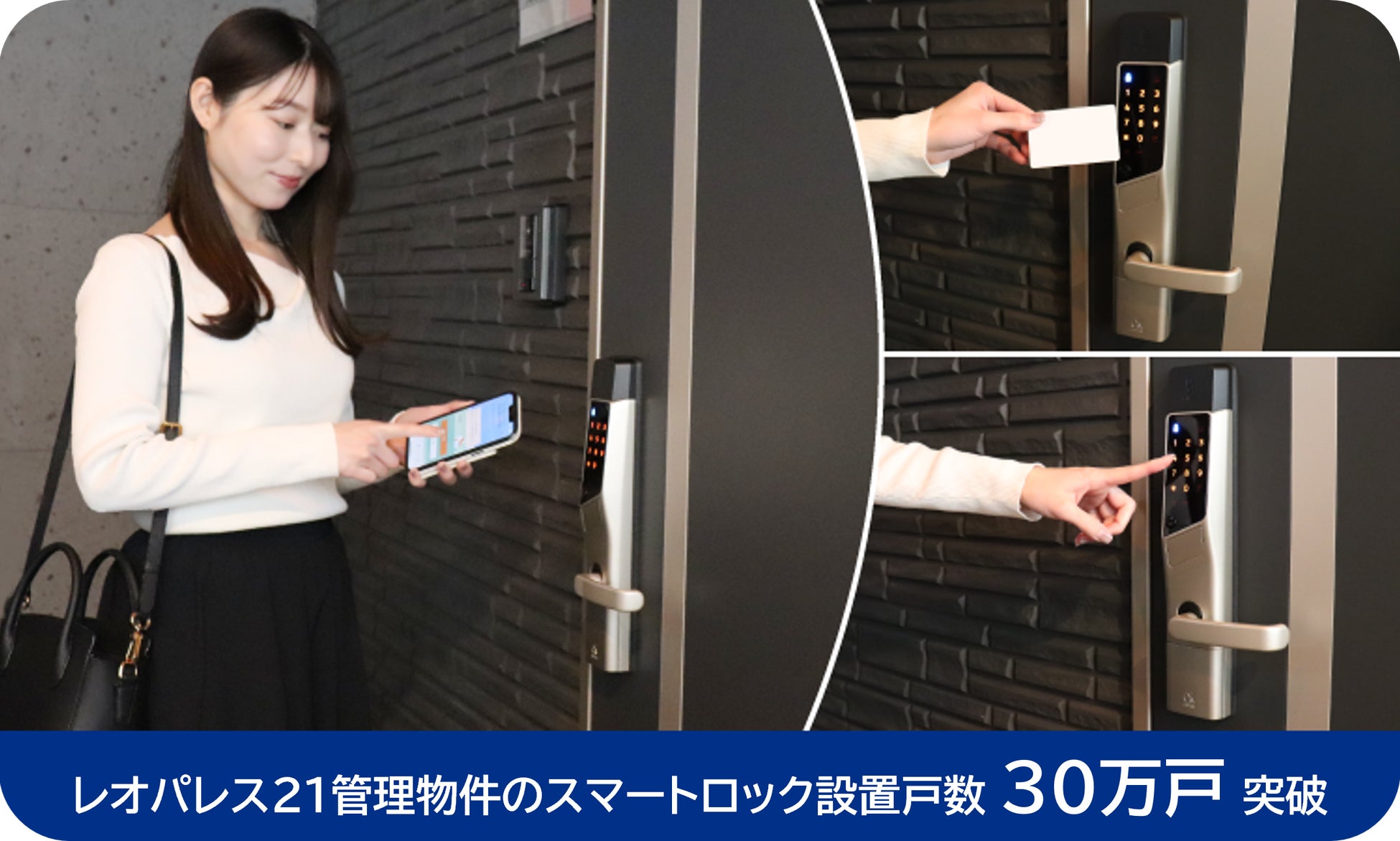 株式会社レオパレス21(東京都中野区 代表取締役社長:宮尾 文也、以下「当社」)は、管理物件へのスマートロック設置戸数が業界最大規模である30万戸を突破したことをお知らせいたします。