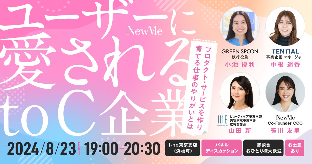 【参加募集】I-neにて、女性のキャリア支援を展開する「NewMe」主催イベント8月23日 開催!「ユーザーに愛されるto C企業〜プロダクト・サービスを作り育てる仕事のやりがいとは〜」