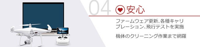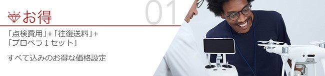 「お得」「カンタン」「信頼」「安心」「便利」の5つのメリットで、ドローンを最適な状態に保ちます。