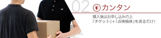 点検パックを購入後、「DJI オンライン修理サービス窓口」にお申込の上、チケットとご依頼品を併せて指定の住所に送るだけで、DJI社による高品質な機体点検サービスを受けることができます。