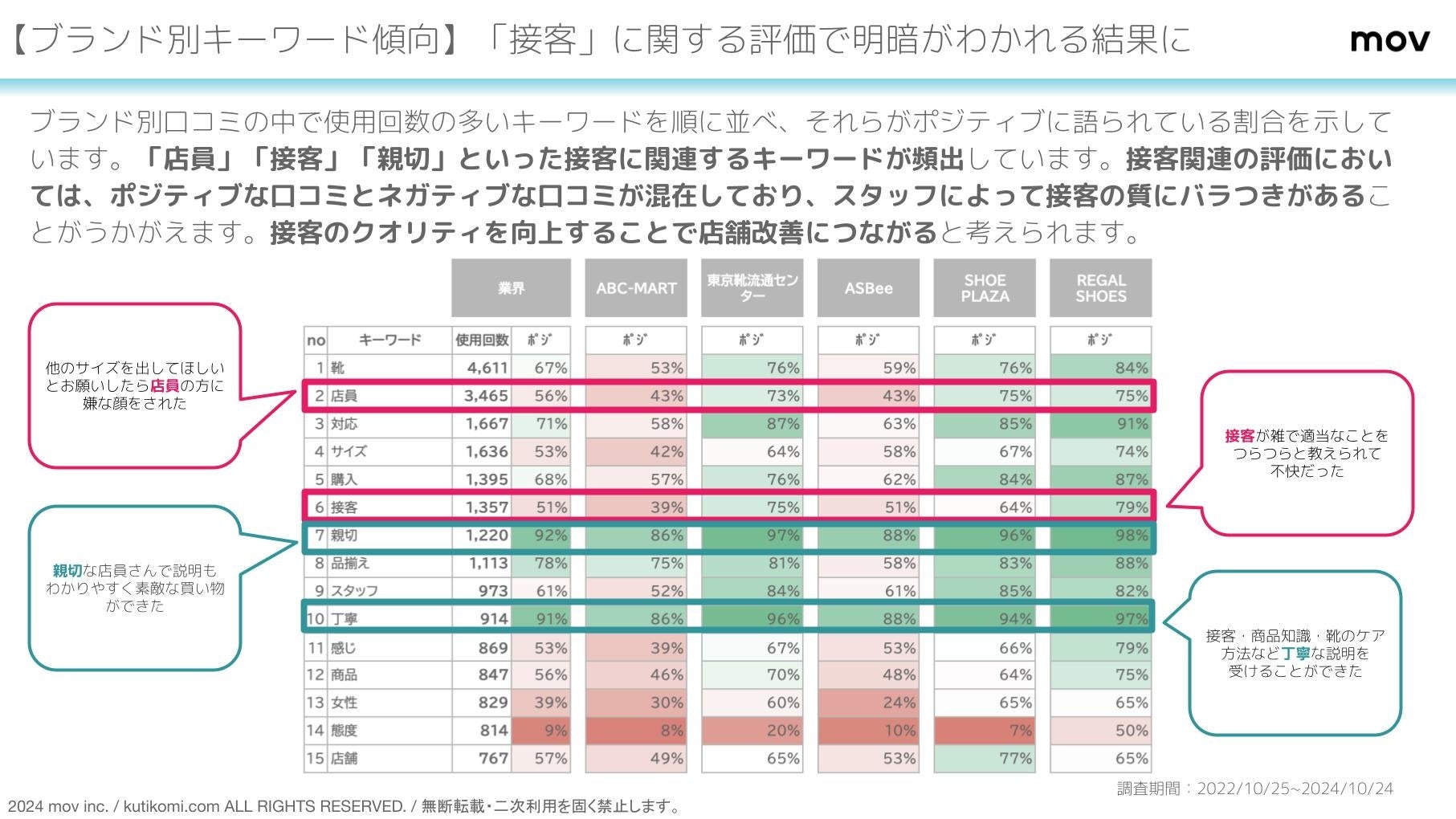 ■【ブランド別キーワード傾向】「接客」に関する評価で明暗がわかれる結果に