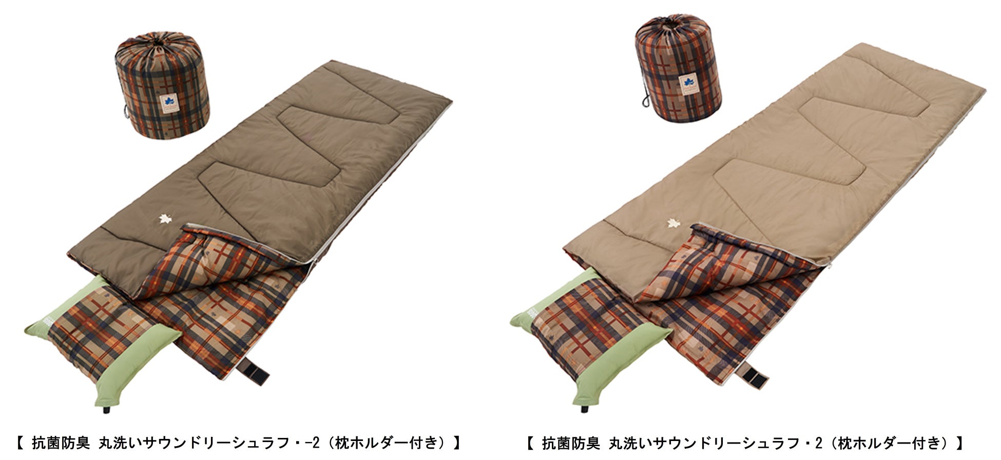 抗菌防臭加工で枕を固定でき、丸洗いができてお手入れ簡単なシュラフ「抗菌防臭 丸洗いサウンドリーシュラフ」シリーズ2種を、アウトドアライフでぜひともご活用ください。