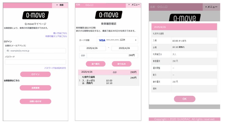 QUADRACのQ-moveサイトにアクセスし、「マイページ」の会員登録手続きが完了しますと確認可能です。