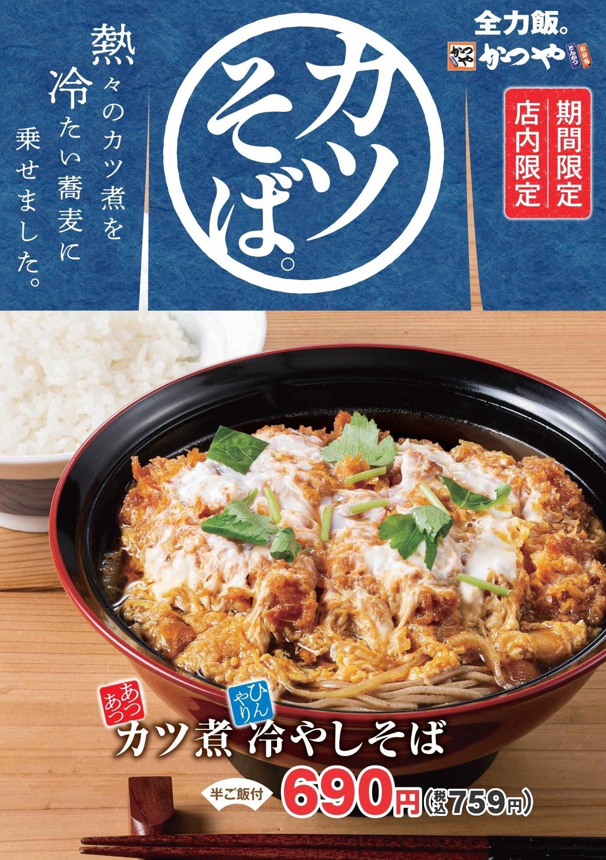 そんな時に選べるメニューとして、冷たいお蕎麦に熱々のカツ煮をのせ食べやすさと食べごたえの両方を兼ね備え、これくらいが丁度よい半ご飯を添えた「かつや」ならではの一品が誕生しました。