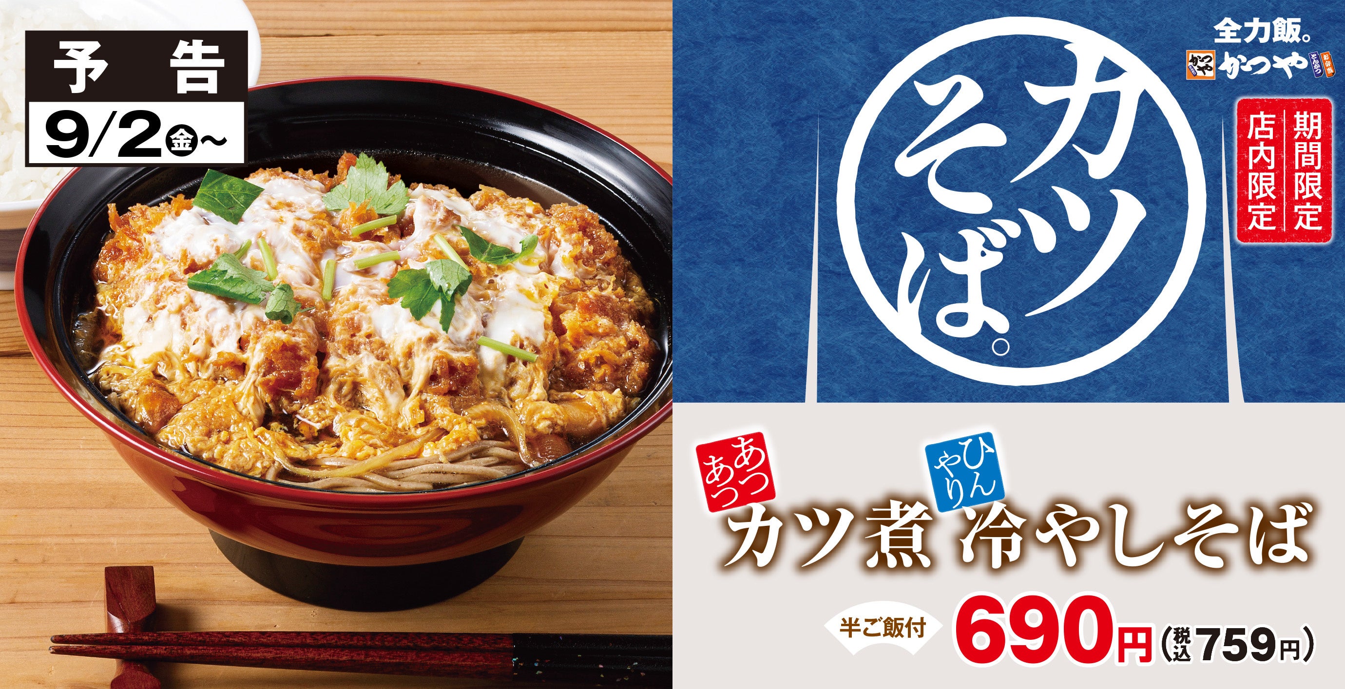 アークランドサービスホールディングス株式会社の⼦会社、とんかつ専⾨店「かつや」を展開している株式会社かつや(本社:東京都千代⽥区/代表:⼤内 勇⼀)は、国内「かつや」にて、期間限定メニュー「カツ煮冷やしそば」を2022年9月2日(金)より期間限定で販売いたします。